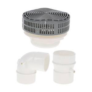 Made of stainless steel, with a screwed grid and sealing gasket. Designed for massage pump suction. Comes with a fitting: straight or 90° elbow.