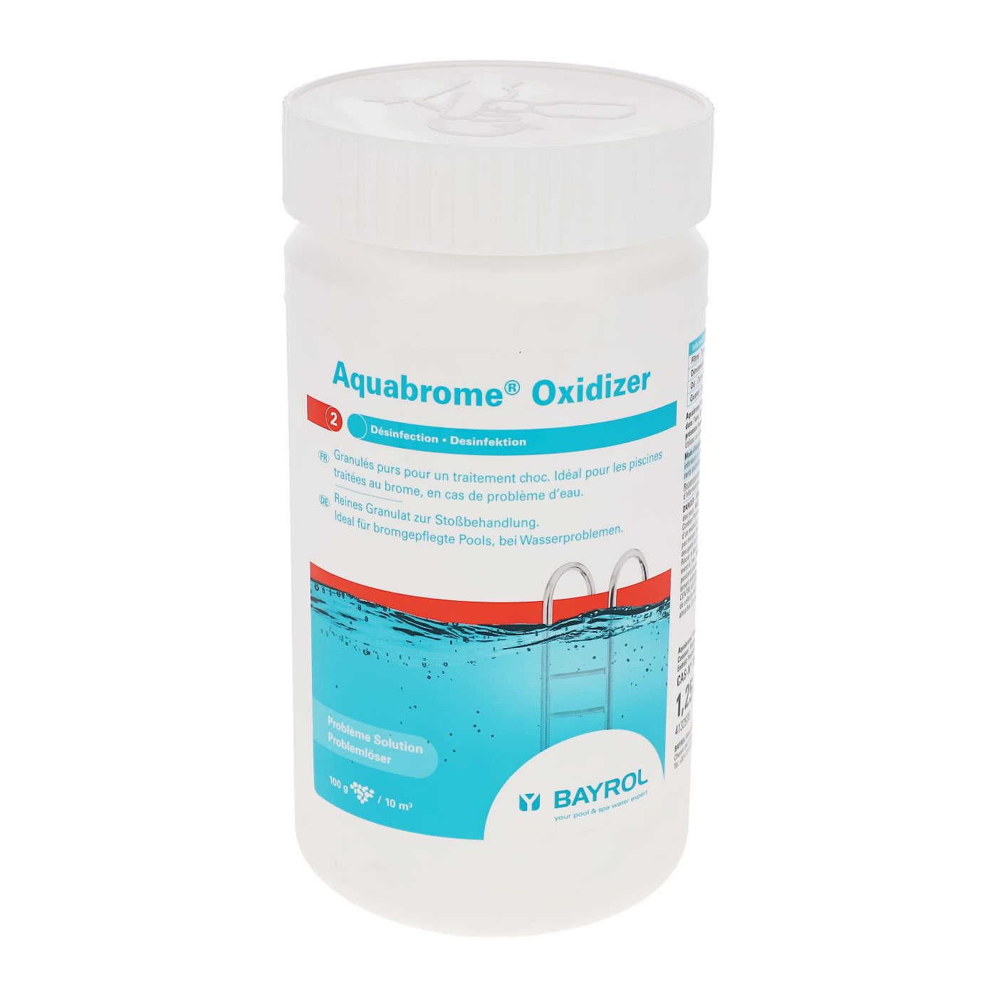 Pure granules for shock treatment. Ideal for all types of spas and pools treated with bromine, in case of water issues.