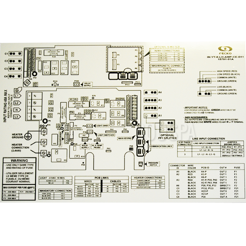 - 7 Connections for pumps, blower, and ozone, including 2 that can be two-speed