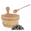 Wooden bucket for sauna with a plastic interior, supplied with a wooden ladle.