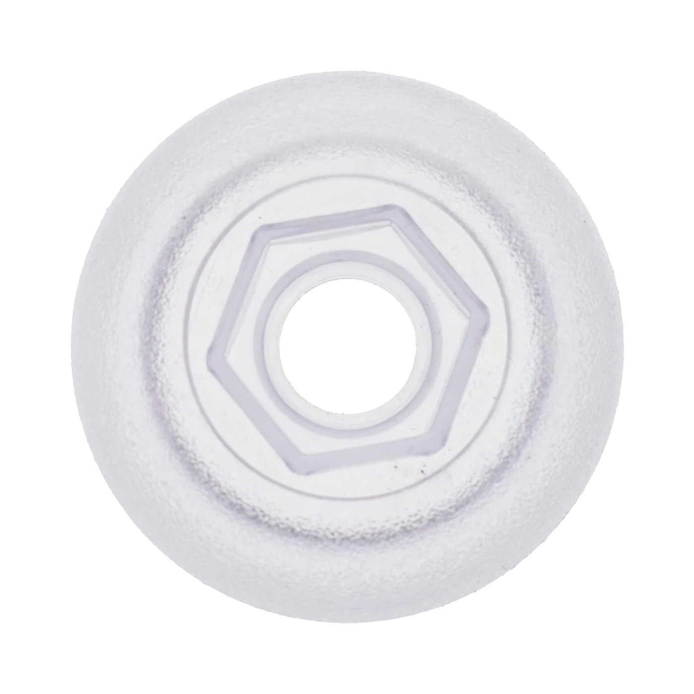 The Aura 602-3838T transparent cap is an original part designed for 1" diverter or air control valves on Coast Spas hot tubs. It serves as the primary diverter cover, protecting the internal mechanism while allowing visibility thanks to its translucent finish.