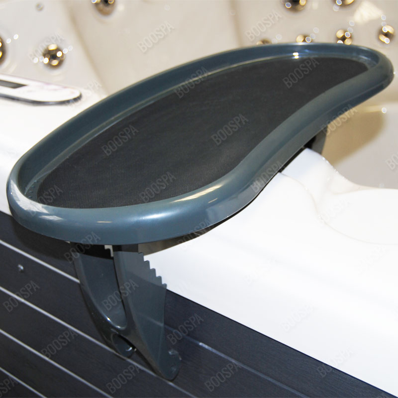 A support bar table with adjustable slide to fit any spa.